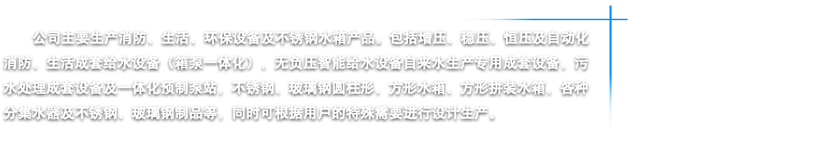 江蘇燁達(dá)環(huán)保設(shè)備有限公司坐落在江蘇省鹽城市建湖縣城,東臨黃海之濱,背倚蘇北平原,處于長(zhǎng)三角經(jīng)濟(jì)一體化和江蘇沿海開發(fā)兩個(gè)國(guó)家級(jí)戰(zhàn)略疊加區(qū)域內(nèi),素有“水鄉(xiāng)明珠”美稱。我公司鑒定走“產(chǎn)、學(xué)、研”相結(jié)合的路子,是江蘇省供水設(shè)備行業(yè)的大型企業(yè)。公司以“一流的管理,一流的研發(fā)設(shè)計(jì),一流的質(zhì)量意識(shí),一流的售后服務(wù)”為宗旨,嚴(yán)格控制原材料質(zhì)素,講求“品質(zhì)是企業(yè)的生命力”的理念,嚴(yán)把質(zhì)量關(guān),從而為客戶提供優(yōu)質(zhì)的供水設(shè)備。公司主要生產(chǎn)消防、生活、環(huán)保設(shè)備及不銹鋼水箱四大類產(chǎn)品。包括增壓、穩(wěn)壓、恒壓及自動(dòng)化消防、生活成套給水設(shè)備(箱泵一體化),無(wú)負(fù)壓智能給水設(shè)備自來(lái)水生產(chǎn)專用成套設(shè)備,污水處理成套設(shè)備及一體化預(yù)制泵站,不銹鋼、玻璃鋼圓柱形、方形水箱、方形拼裝水箱,各種分集水器及不銹鋼、玻璃鋼制品等,同時(shí)公司可根據(jù)用戶的特殊需要進(jìn)行設(shè)計(jì)生產(chǎn)。燁達(dá)人將以科學(xué)的管理、精湛的技術(shù)、可靠的質(zhì)量、優(yōu)良的品質(zhì)向社會(huì)各界服務(wù),我們始終坦誠(chéng)相見(jiàn),我們當(dāng)然走在最前面······ |